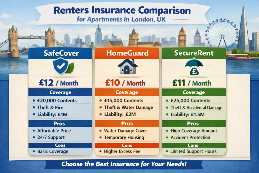 Renting an apartment in London comes with many costs, but one expense that tenants often overlook is renters insurance – known in the UK as contents insurance for tenants. Unlike homeowners, renters aren’t responsible for the building structure, but your personal belongings (furniture, electronics, clothes, jewellery, and even your roommate’s gaming console) are completely unprotected if the worst happens. With burglary rates in certain London boroughs above the national average and the ever-present risk of water leaks or fire, having the right policy is essential. This 2026 guide compares the best renters insurance providers for London flats, reveals hidden discounts, and helps you choose the perfect cover for your rental apartment.